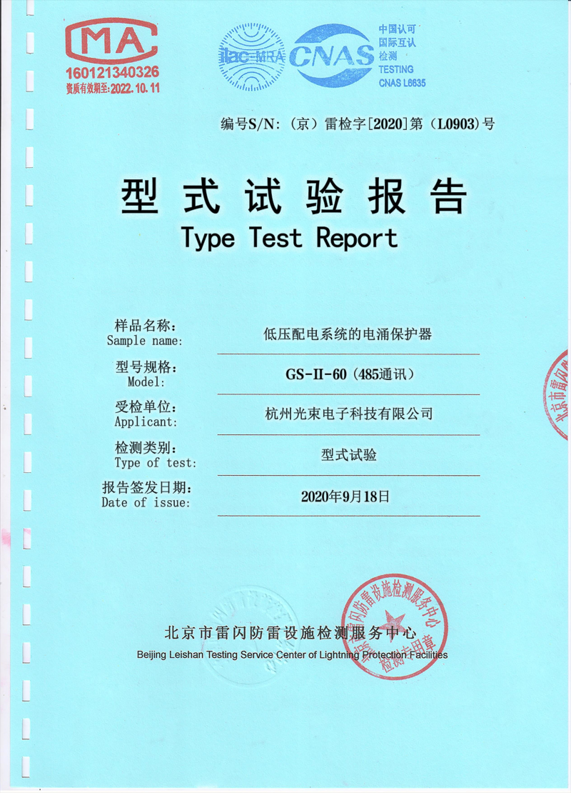 光束BC浪涌保護器檢測報告